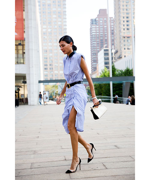 Οι κλασικές γόβες, ιδανικά με εκείνα που φτάνουν μέχρι το γόνατο και με μια ζώνη στη μέση. Ολοκληρώστε με τεράστια γυαλιά ηλίου.