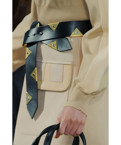Ένα από τα σημεία «κλειδιά» της φετινής σιλουέτας είναι η έντονα τονισμένη μέση. Το σχήμα της κλεψύδρας εμφατικά τονίστηκε μέσα από το αξεσουάρ της ζώνης. Ζώνες σε κάθε στυλ και πάχος: Λεπτές, πιο φαρδιές, με περίτεχνες λεπτομέρειες ή αυστηρά minimal.
