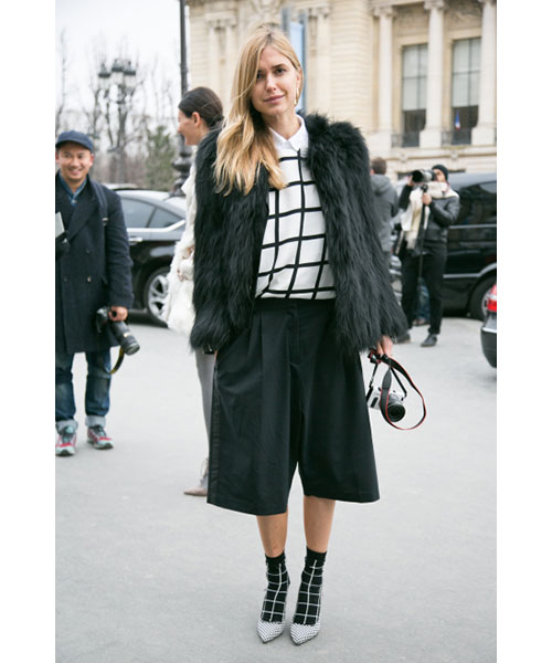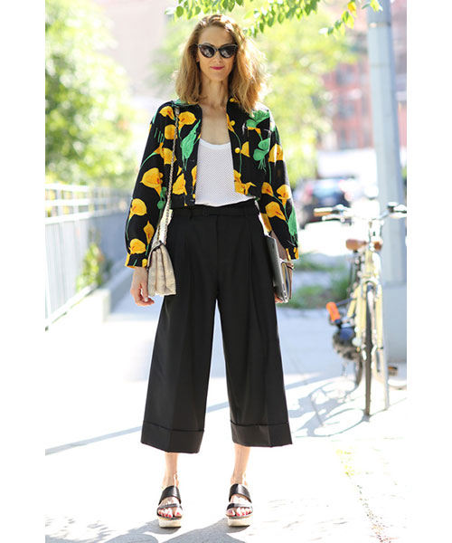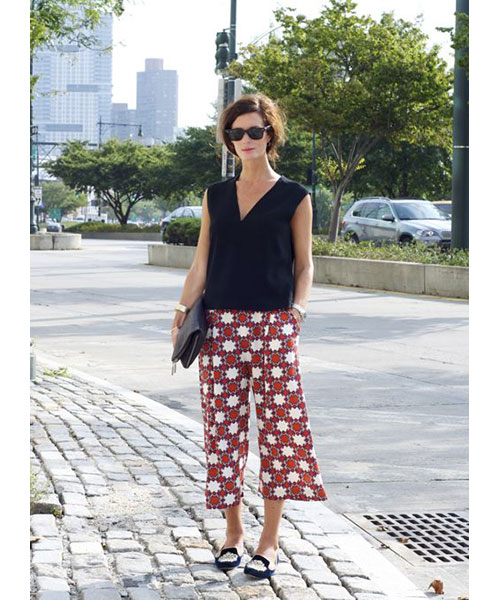 Δείξτε δέρμα, όσο χρειάζεται, όχι υπερβολές. Ένα αμάνικο top εξισορροπεί σωστά τον όγκο των culotte.