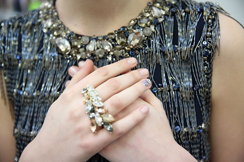 - Λουλούδια στόλισαν θεσπέσια φορέματα, φτιαγμένα από μεγάλες ημιπολύτιμες πέτρες.