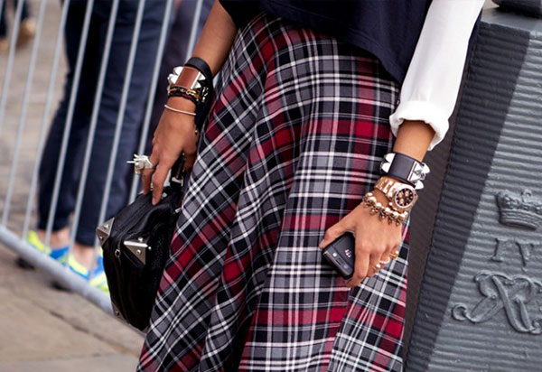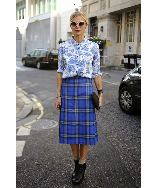• Μια καρό μίνι φούστα – εμπνευσμένη από τα 60s – φορέστε την με ένα ζιβάγκο, ένα ζευγάρι σκαρπίνια και ένα σακάκι. Τα έντονα τονισμένα μάτια και οι μεγάλες βλεφαρίδες ισορροπούν το girly ύφος της φούστας.