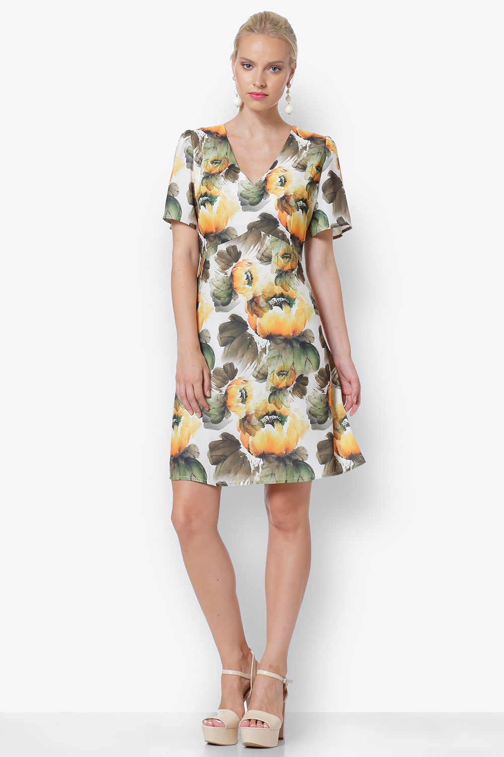 Το συγκεκριμένο floral φόρεμα είναι για τις πιο κλασικές. Τις γυναίκες που υπογράφουν το στυλ τους με femme fatale επιλογές. Το pattern, αλλά και η γραμμή του παραπέμπουν στο στυλ της Σοφία Λόρεν. Οπότε, όσες έχετε καμπύλες, σιλουέτα σε σχήμα κλεψύδρας, ατέλειες γύρω από την κοιλιά, ένα φόρεμα σαν κι αυτό θα αποδειχθεί η καλύτερη επιλογή του καλοκαιριού. Τα αξεσουάρ που του ταιριάζουν είναι από την παλέτα των neutrals.