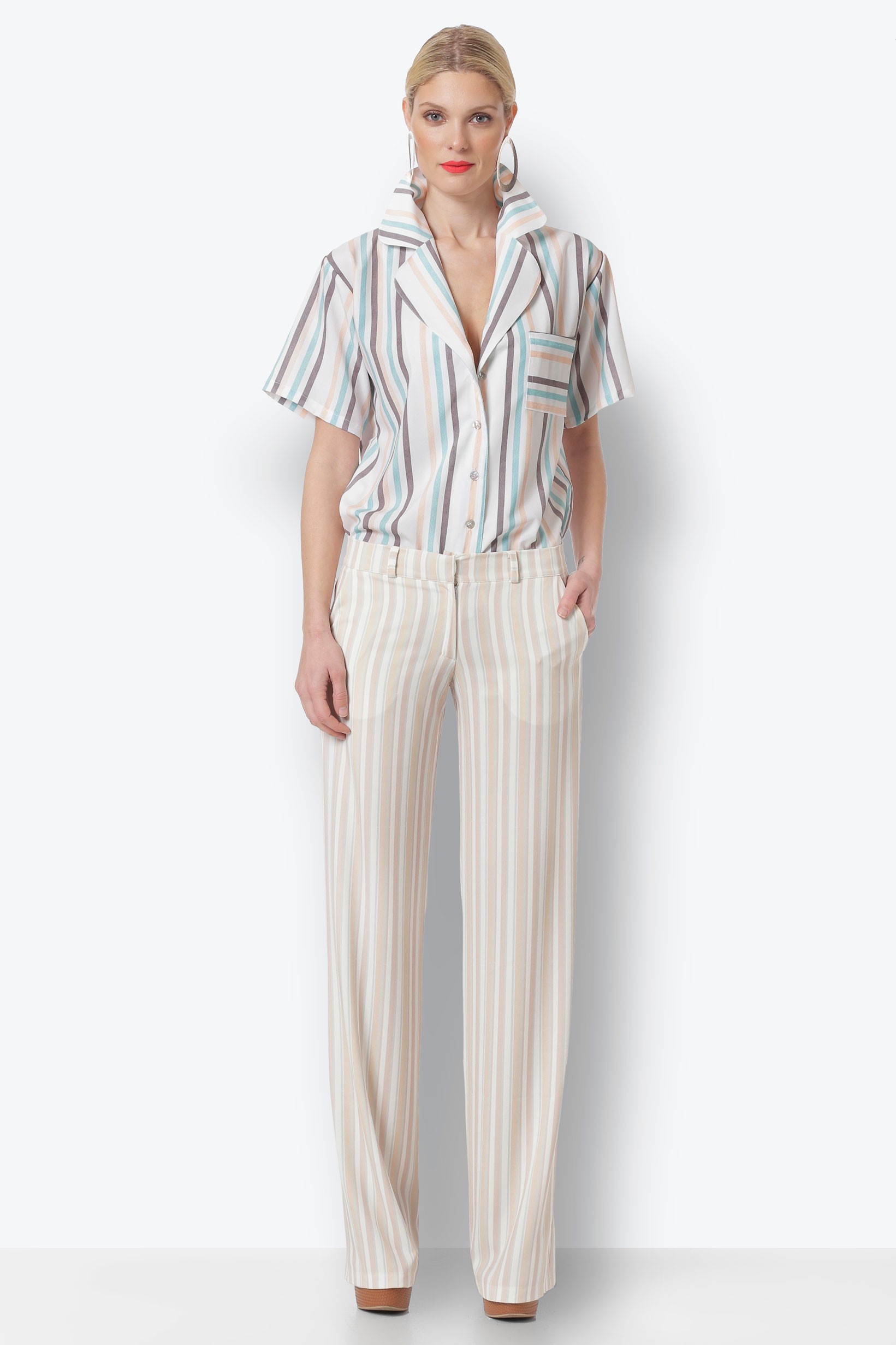Οι τόνοι του συγκεκριμένου look αμμώδεις, καλοκαιρινοί, φωτεινοί, ευέλικτοι. Ο πιο εύκολος τρόπος για να βάλετε χρώματα στην καθημερινότητα σας. Συνδυάστε το με κλασικά αξεσουάρ ή με άλλα πιο έντονα, στα χρώματα του πορτοκαλί, του κόκκινου, του κίτρινου, του 70’s μουσταρδί.