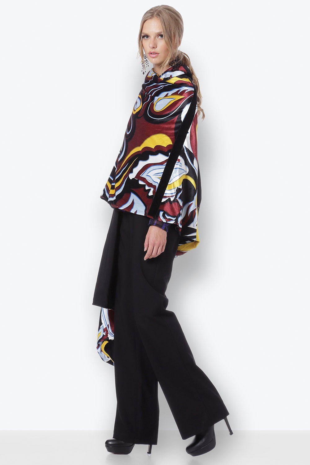 Εκλεπτυσμένη, με drama εφέ, αυτή η εμπριμέ κάπα. Ένα διαχρονικό κομμάτι του οποίου ο ρόλος του είναι να προσθέτει ένταση σε απλά styling, χωρίς πολλή προσπάθεια.