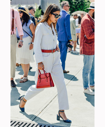 Αν πιστεύατε πως είχατε ανακαλύψει το τέλειο πρωινό styling μιας ολόσωμης φόρμας, μόλις ανακαλύψατε το πιο σύγχρονο glam προφίλ της. Τελειοποιήστε την εμφάνιση σας με minimal, φινετσάτα κοσμήματα και απαραιτήτως με ένα ζευγάρι γυαλιά ηλίου.