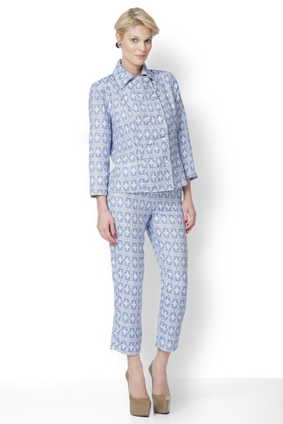 Η Miroslava Duma με κοστούμι στο μπλε του κοβάλτιου από την εταιρεία Alice & Olivia.