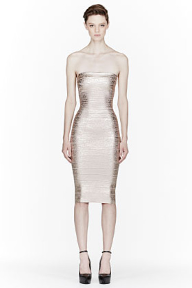 Μεταλλικό κι ελαστικό ύφασμα για αυτό το φόρεμα από το polyvore.com με την υπογραφή Herve Leger.