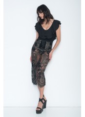 Φούστα από μαύρη δαντέλα εξαιρετικής ποιότητας για μοναδικές και εντυπωσιακές εμφανίσεις.