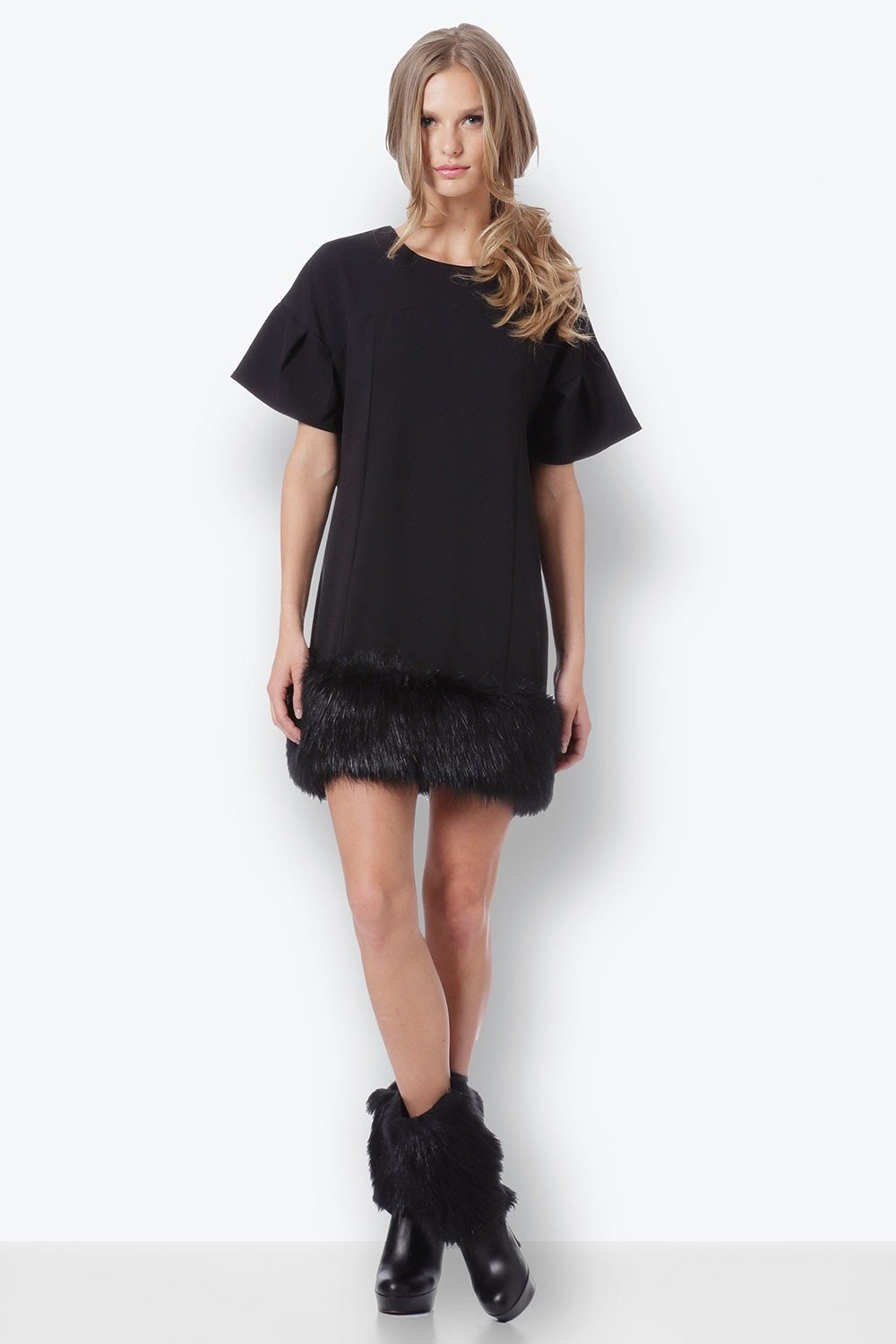Μίνι, κοριτσίστικο κι εύκολο να φορεθεί από όλους τους σωματότυπους. Με ψηλές μπότες θα δείχνει υπέροχα. Έχει ένα φερμουάρ πίσω και τελειώνει σε μαύρη οικολογική γούνα.