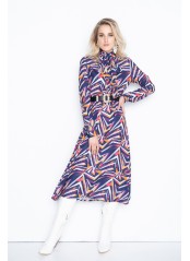 Κλασσικό και υπερστυλάτο φόρεμα με έντονο print. Έχει κουμπάκια μπροστά μέχρι κάτω από το στήθος και τούνελ με λάστιχο στη μέση. Ο γιακάς του τελειώνει σε μια φαρδιά γραβάτα που δένεται εμπρός ή στο πλάι.